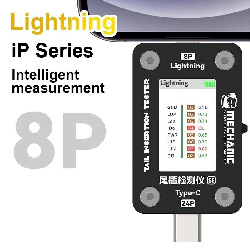 Mångsidig Kompatibilitet: Stöder ett brett utbud av enheter, inklusive Lightning 8P-gränssnitt (iPhone-modeller) och Type-C 24P-gränssnitt (Android och andra enheter). Denna mångsidighet gör den idealisk för att diagnostisera och reparera både iPhones och Android-smartphones.