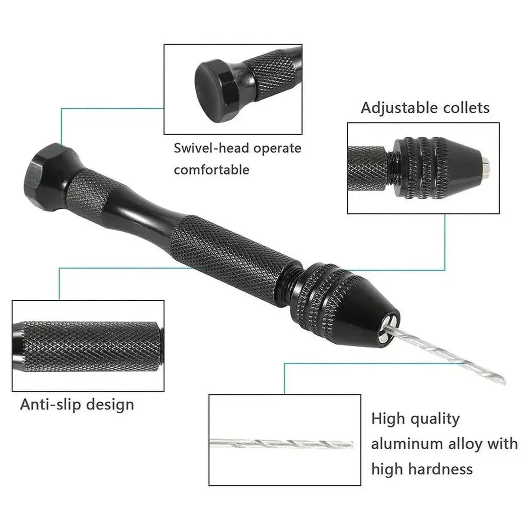 Handborren har en justerbar borrhållare som rymmer olika borrstorlekar, vilket säkerställer en perfekt passform för dina specifika behov. Idealisk för modeller, smycken, pärlor, plast, trådar och andra gör-det-själv-projekt som kräver exakt hålborrning.